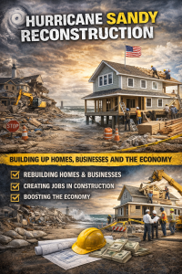 Twelve years after the September 11th terrorist attacks on the World Trade Center removed the iconic southern Manhattan skyline, the newly erected One World Trade Center stands tall … Continue reading - Hurricane Sandy Reconstruction Building Up Homes, Businesses and the Economy