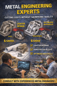 Often, we receive designs from engineers who have recently graduated. Many times they design products according to textbook standards, giving each part a machined surface. There are some software programs that use this as a default setting as well. We’ve found that in many cases a cast surface will work, and will save money on manufacturing. We also get inquiries with outdated material specifications. By recommending a substitute alloy with the same (or better) properties, we’ve been able to save customers 30 and 40% on materials.